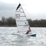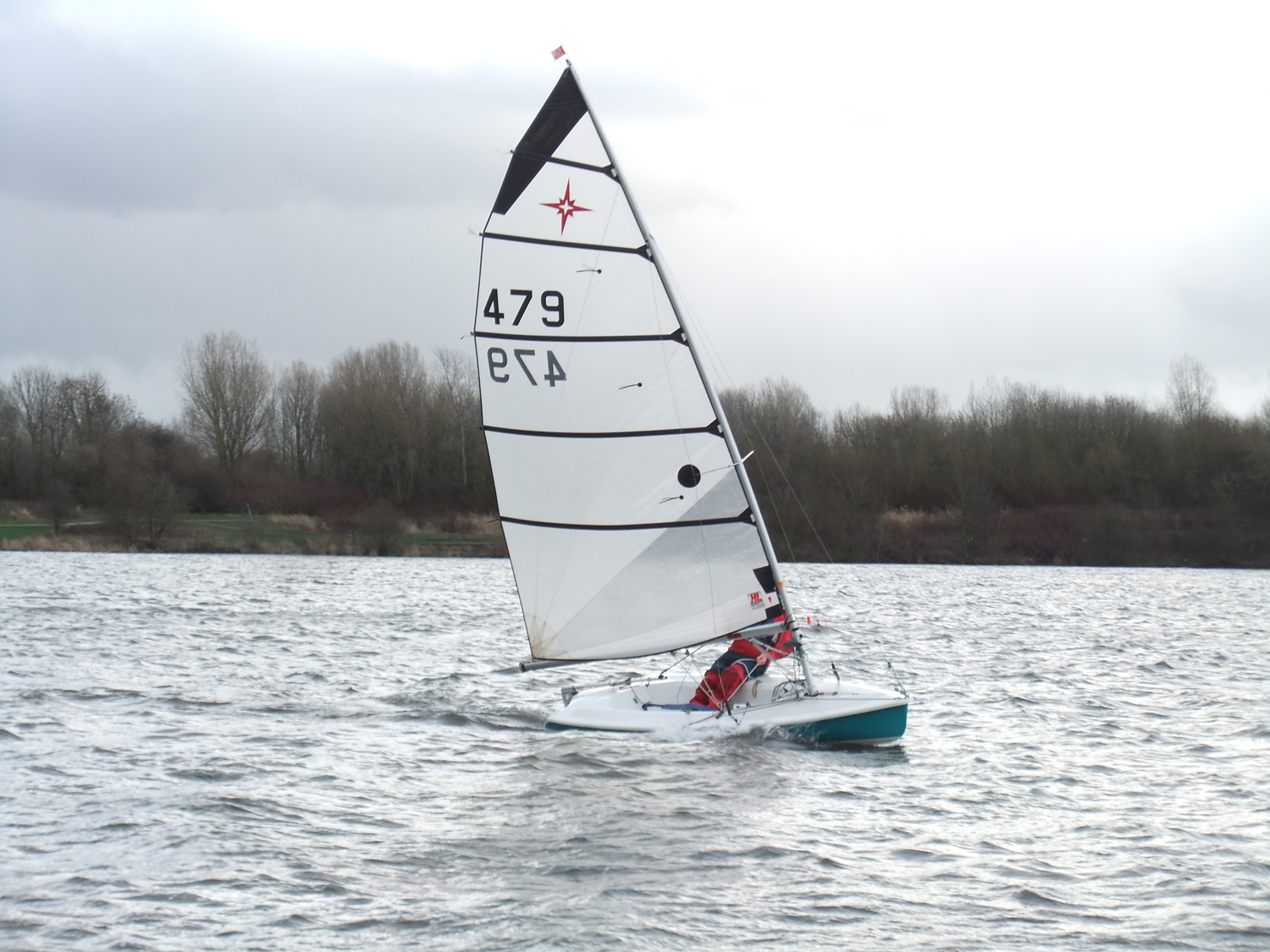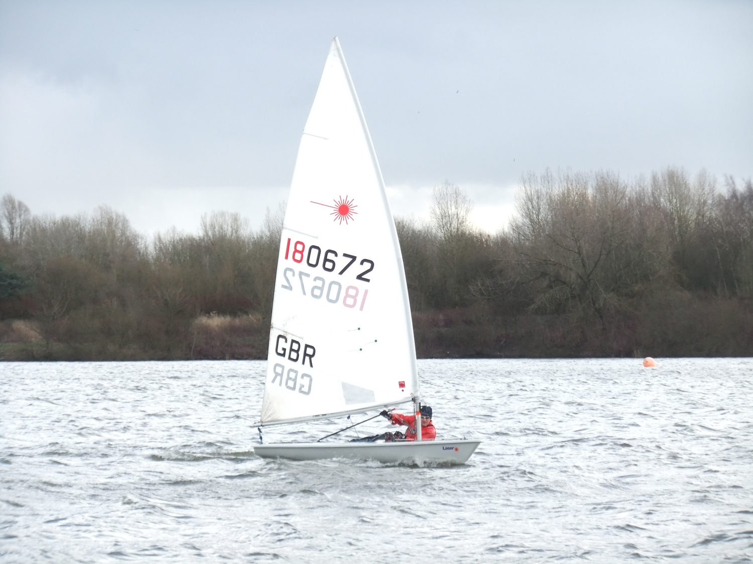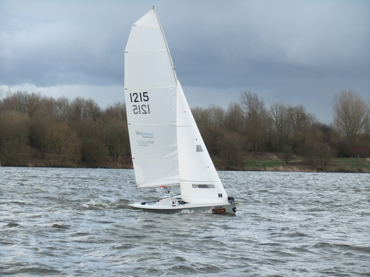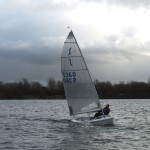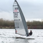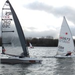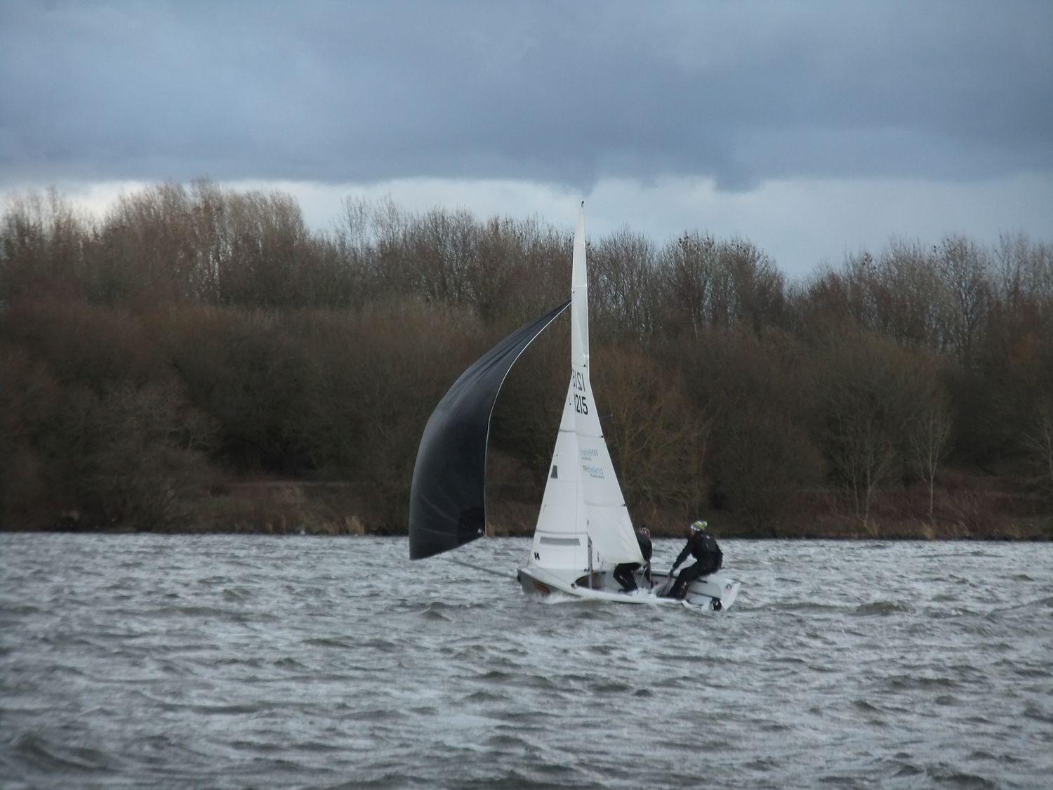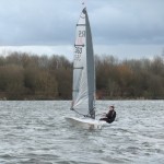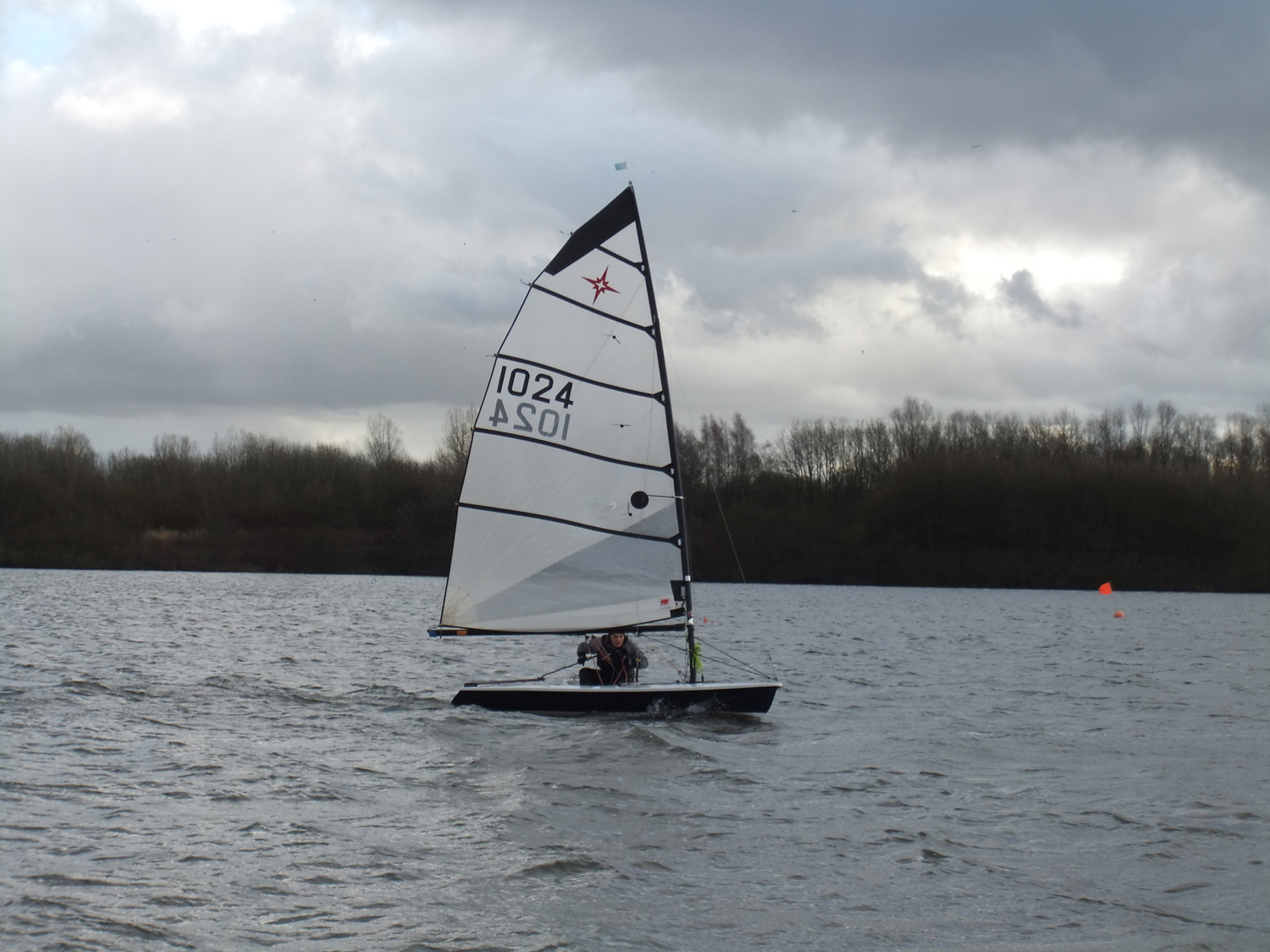 Races 11 & 12 on Sunday 9th February 2014. With some events cancelled this weekend due to adverse travel conditions and a forecast for near gale force winds it was no surprise that upon arriving at the club to find a very cold and gusty breeze only 35 boats ventured out onto Pennington Flash for races 11 & 12 in the ‘Crewsaver’ sponsored Tipsy Icicle series at Leigh & Lowton sailing club.As the fleets launched there was a 19 knot breeze from the south west. The direction allowed the race team to start at the bottom end of the water and set a long beat and four off wind legs for the non-asymmetric fleets. Prior to the start the wind strength increased and the fleet were hit by gusts of 34 knots (Force 8) which resulted in many capsized boats, a bent mast for one of the Solo’s and the asymmetric fleet leaders, the Allen brothers, having their slot gasket rip off as they sailed off wind thus causing them to return to shore. Many other boats returned to shore either before the start or retired during the course of their race.