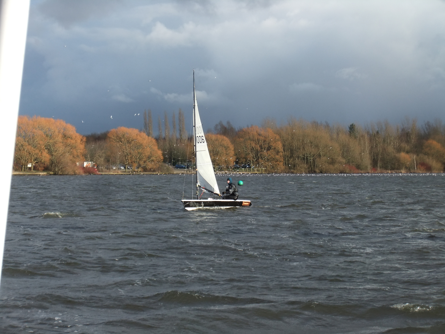 After a hard days sailing in testing conditions for even the most experienced helms there can only be one or two crews that did not at some point require the assistance of a safety boat. The safety crews worked exceptionally hard in recovering helms from overturned boats, returning them to shore and later retrieving the boats. For the second weekend running a special thanks to the safety boat crews and volunteers who had a very busy day on a cold gusty day.