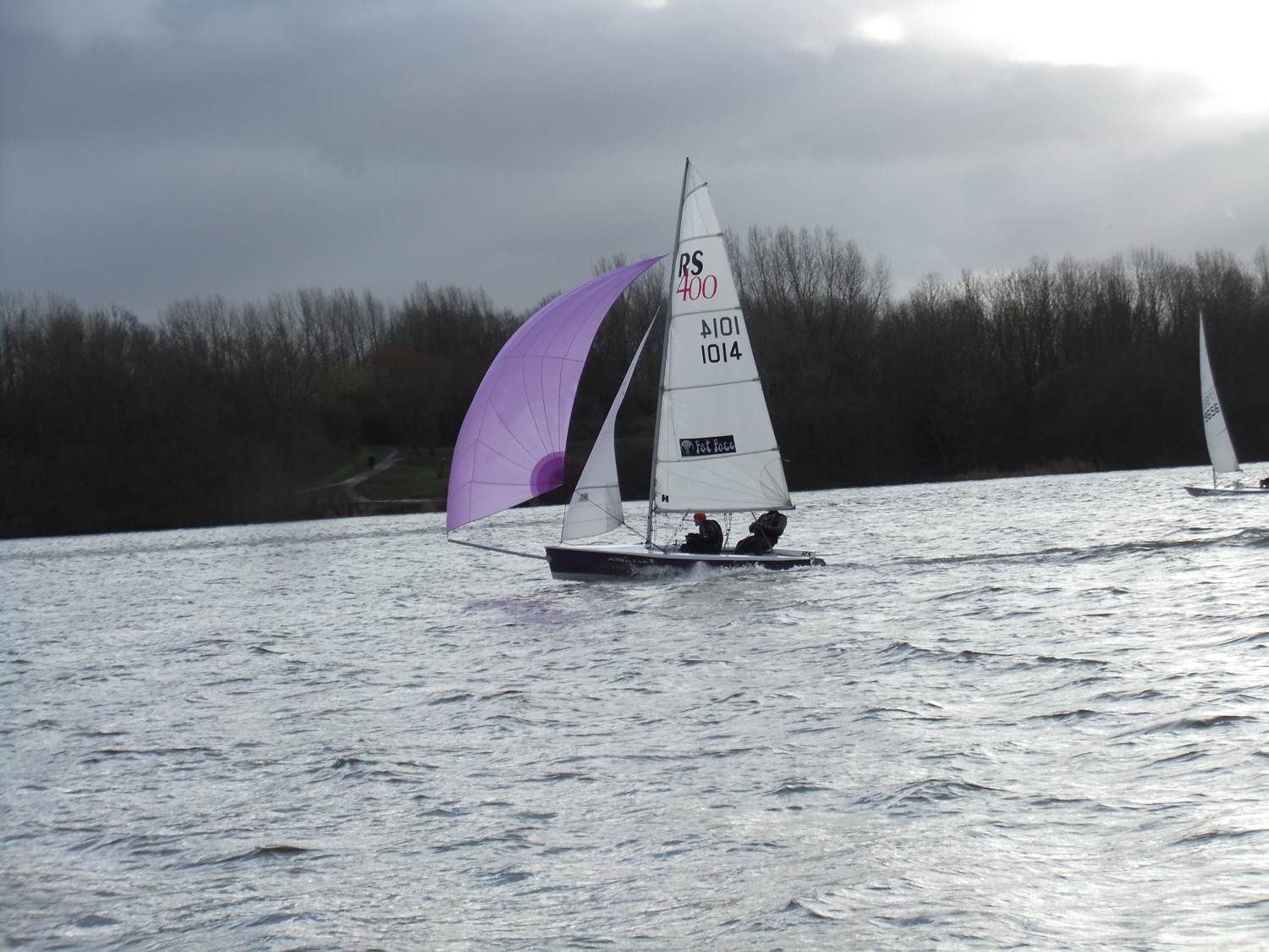 Next away were the 8 boat Asymmetric fleet who, to their great delight, were set a windward/leeward course. Again staying upright was the key and only one boat managed to avoid capsizing, or hitting anything else on the water, this being the RS400 of Gary Knott and guest crew Mark ‘Beefy’ Dingsdale (LLSC) who took the bullet. Behind them there were a few capsizes, collisions and retirements again due to fatigue, gear failure and ripped sails. In all only three boats finished the race with Hamish Gledhill/Simon Dowse (RS400 – West Riding SC) second and Caroline Exley/Jude Allen (RS400 – LLSC) third.
