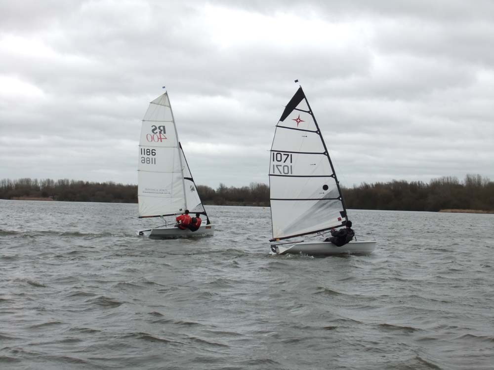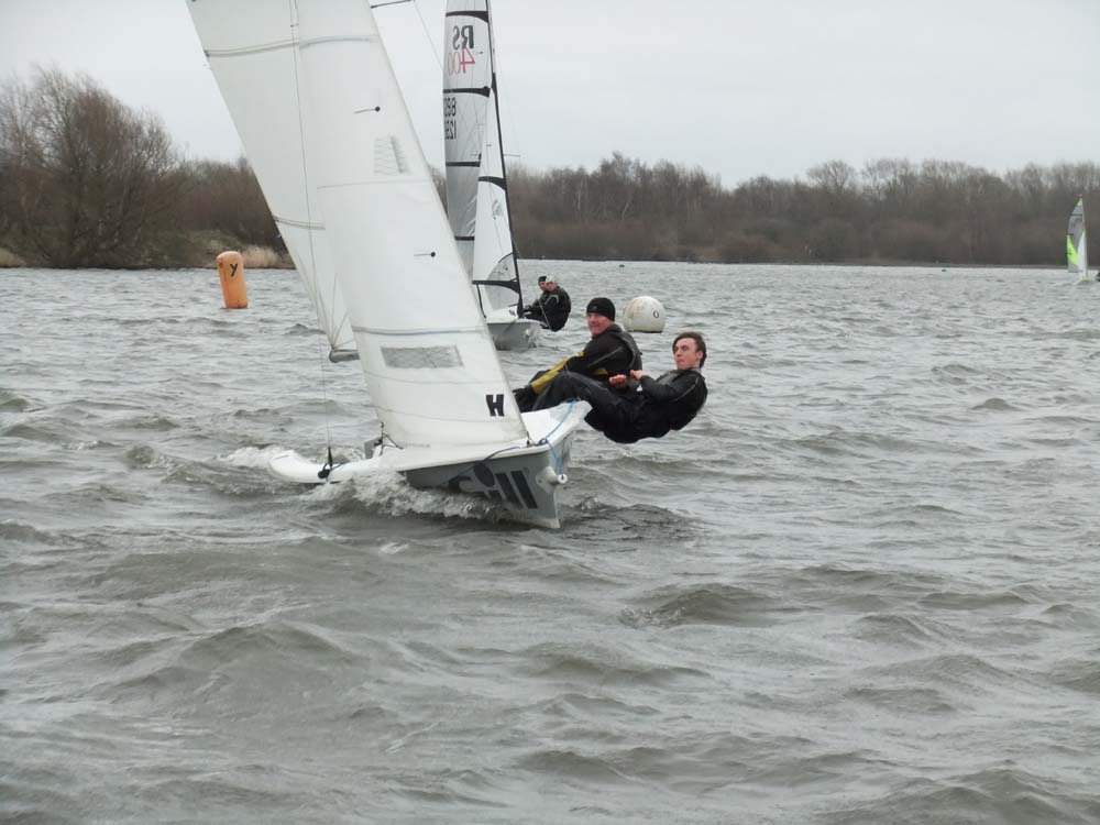 Exley/Hall made no mistakes in the second Asymmetric race of the day as they revelled in the big breeze to sail well and upright to finish miles ahead of the fleet to take first place overall. The RS Feva XL crew had to settle for second while the Parkers, having trawled their kite and later practised their swimming and boat righting techniques, came home in third with Bill Kenyon/Andy Dawson (RS400 – Budworth SC) fourth. Series leaders Paul/Mike Allen (RS400) were absent this weekend due to family commitments but they retain the overall lead while Exley/Hall have now climbed into second some 7 points behind them. Gledhill/Dowse (RS400), who were also missing this weekend, have dropped to third 5 points behind Exley/Hall while McKeand/Partingtone (RS200), who were on race team duty this weekend, are now fourth overall 1.8 points behind Gledhill/Dowse.