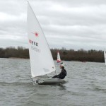 Only 8 Lasers ventured out but the fleet included the top 4 boats in the series, two of which deciding to use their radial rigs. This fleet is turning into a two horse race between Jack Hopkins (Delph SC) and Greg Marshall (West Lancs YC) and it was Hopkins who took the win while Marshall, having missed the start and some 2 minutes behind the fleet, managed to claw his way through to take second. Glyn Purnell (LLSC) finished third and Tim Luke (Killington Sailing Association) had his best result of the series to date as he persevered and sailed well in the trying conditions to finish fourth.
