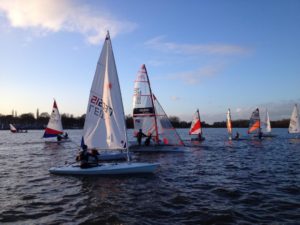 40 competitors made up a strong field at the Leigh & Lowton annual Junior Winter Regatta. It was a day for cold feet and lots of hot chocolate!! A cracking day’s racing was held in a near perfect North Easterly F2-3 wind, but the day was biting cold and a number of the sailors were struggling to keep warm.