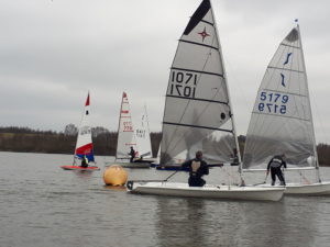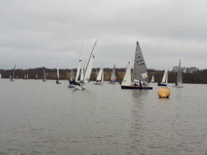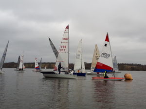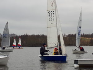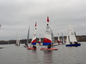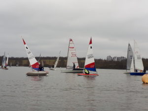 A game of snakes and ladders unfolded on a bright winter’s day at the Tipsy Icicle Series, the UK’s biggest dinghy winter series – the 7th week’s racing on Sunday 18th February. The wind turned in a patchy SSE 4-6 knots, gusting 10, for Race 13 of the series and a little less for the following race. Competitors were constantly looking over their shoulders for pressure and nothing was being taken for granted in the shifting winds.