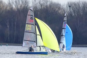 Going into the last race, Pickles/Sharman had the event sown up by a point, but there was a close call for 2nd with The Knights having to beat Catchpole/Coop by 2 to take it. John Heissig/Nicky Griffin (Llangorse) had saved their best until last after a winter layoff top storm into the lead off a flying start and never be headed. Pickles/Sharman were in their favourite spot of the weekend once again in 2nd. The Knights sailed consistently well again to take 3rd place, but with Catchpole/Coop pulling through to a solid 4th it wasn’t enough to change the overall results.