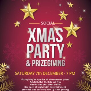 This year’s Xmas party is already well booked up, so if you want to come then book on soon, we are limited to 125 places with over 100 booked already. Book any tickets through the link below, no ticket, no food! Adults – £4, Kids U18 – free. Prizegiving, buffet, games and DJ Flash’s disco beats. 7.00pm sharp start for prizegiving, bar open from 6.30pm. https://webcollect.org.uk/llsc/event/prizegiving-buffet-and-christmas-party-2